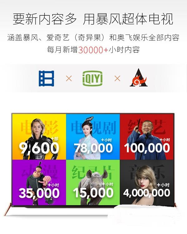 智能電視的作用是什么,當然是影音播放;而播放的是什么,當然是內容。作為一款智能產品,內容就顯得格外重要。在目前的互聯網電視企業均將提升自身產品品質的目光聚焦到了內容方面,而暴風TV正是行業中海量內容的典范。暴風+愛奇藝+奧飛的組合,擁有全網最多的影視資源。正是應了那句話“要新內容多,用暴風電視”。