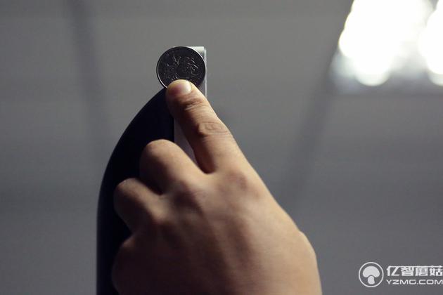 機身采用金屬邊框磨砂工藝,邊框厚度不足一枚1元硬幣的直徑。