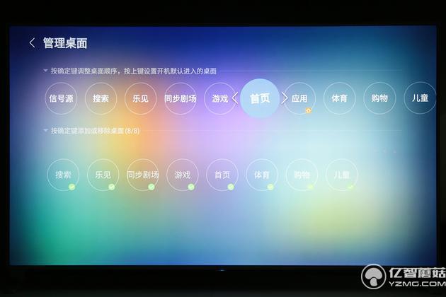 發展至今除了原有的輪播、搜索、信號源等,已經加入了體育、樂見、兒童、購物等桌面。用戶可以針對個人喜好在設置中開關不同桌面來進行電視內容和功能的私人訂制。