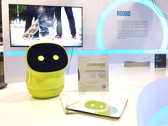 CES前方消息,北京智能管家科技有限公司Roobo旗下的布丁機器人團隊1月6日在CES上發布新一代布丁豆豆兒童啟蒙機器人(Pudding BEANQ)。