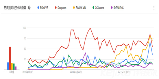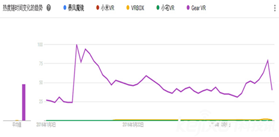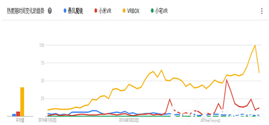 眾所周知,來自東方的神秘力量在國外的VR市場中出貨量一直居高不下,這一點(diǎn)從上圖中也可以得到證實(shí)。VRBOX在國外的搜索熱度一直很高,只有小米在發(fā)布小米VR正式版的期間可以與之匹敵,而暴風(fēng)魔鏡和小宅VR則完全看不到他們的身影,也許是搜索關(guān)鍵詞的問題?