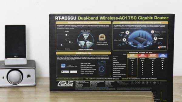 背面由產品的特性介紹,主要是 AiRader 和beamforming信號成束技術,這可以增加150%的無線涵蓋范圍, 華碩與趨勢科技Trend Micro進行深化合作,這臺RT-AC66U網(wǎng)絡安全防護功也很強。另外手機APP也是一個看點,這讓路由器設置和管理方便很多。