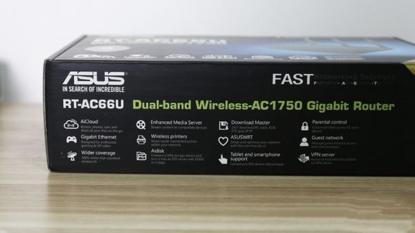 在包裝側面介紹的功能更多,比如AiCloud云技術、ASUSWRT、下載大師、無線打印支持、媒體服務器等功能都是比較實用的。