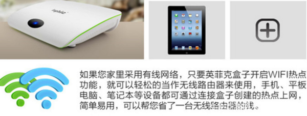 英菲克I9的時尚精致是與生俱來,全套白色時尚配件,結合淡綠色的腰線,干凈溫馨可以更好地搭配家居風格,英菲克I9配備64位全芯8核CPU,性能和系統穩定性都有明顯提升,4K解碼+4K輸出,高清無碼纖毫畢現,新品8核32G內存,告別加載快速打開應用,大容量存儲,盡情安裝沙發管家內的應用于游戲,豐富接口適用于各種老電視和液晶電視,海量影視免費看,高清大片,電影,電視劇綜藝,免費資源,更多影視片庫隨心點擊,手機遙控多屏互動,支持iOS安卓設備變成虛擬遙控器,結合電視大屏更好玩,支持自建無線熱點,提供給手機平板使用,真正的做到了一機多用。