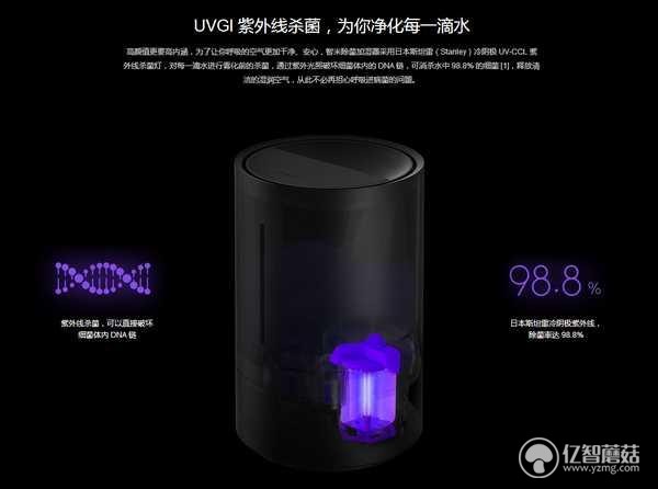 除菌裝置也是智米除菌加濕器的一大賣點,其采用的是日本斯坦雷(Stanley)的冷陰極 UV-CCL 紫外線殺菌燈,通過紫外光照破壞細菌的 DNA 鏈,據稱可以消滅 99.99% 的細菌,從而保證我們的房間不再受到細菌的污染。
