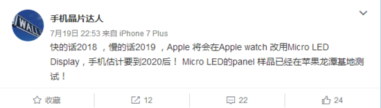 不過,近日根據業內人士在微博上的爆料稱,蘋果將會在明年或后年將Apple watch改用Micro LED顯示屏幕,以取代OLED屏,目前已經在測試樣品了。