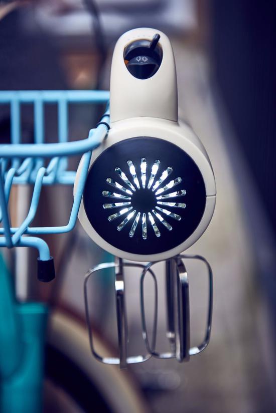 后備箱是微波爐,車座像迷你電餅鐺,打蛋器和夾子裝飾車輪,叉子勺子裝飾車身。