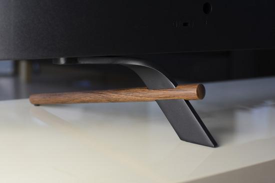 從電視背面,我們能夠更清楚地看到“榫卯”結(jié)構(gòu)的精巧之處,它不需要任何螺絲來(lái)固定,只需要通過(guò)自身結(jié)構(gòu)就能保持得非常穩(wěn)固。