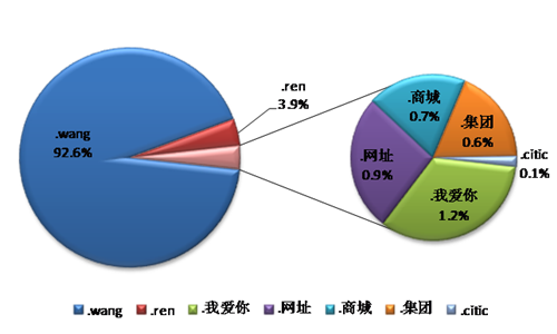 圖1-3:截至2014年12月底“.wang”、“.ren”等新通用頂級域占比情況