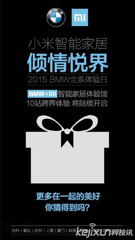 小米公司向來(lái)是不出手則已,一出手就嚇你一跳。就在今天,小米宣布牽手寶馬公司,將共同打造完美智能生活。即日起將在全國(guó)10個(gè)城市開(kāi)放2015BMW全系體驗(yàn)日,用戶在試駕全系車(chē)型的同時(shí),還可以在體驗(yàn)館試玩小米智能家居產(chǎn)品。...