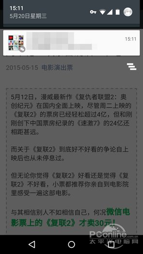 接著回到主界面,看上去微信似乎沒有什么變化。但是,從此以后,當你在微信中閱讀文章時,只要呼出安卓的多任務菜單,就會發現,文章頁已經獨立出去,成為一個多任務標簽了!如此一來,看文章的時候即使有微信消息,也能夠通過安卓的多任務菜單隨意切換文章頁和微信聊天窗口,既不影響聊天,也不影響讀文章!