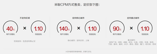 根據騰訊最新公布的財報,微信和WeChat的合并月活躍賬戶數已經達到了6億。對于廣告主來說,微信里那些比較年輕、用戶質量又相對較高的用戶應該是不愿意錯過的目標。下面這張圖是微信朋友圈廣告的售賣方式,看完之后你應該能感覺到它有多燒錢。