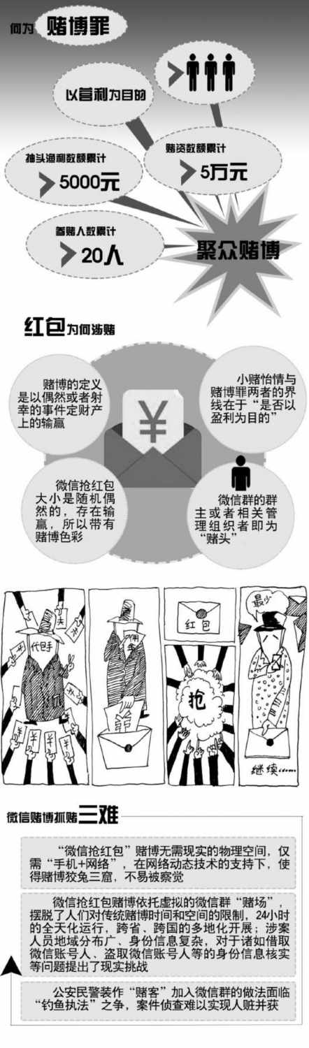 正如王先生所說,“微信搶紅包”隱蔽性強、流動性大、傳播速度快、迷惑性強、影響面廣。相比傳統線下賭博案件,查處上困難更大。