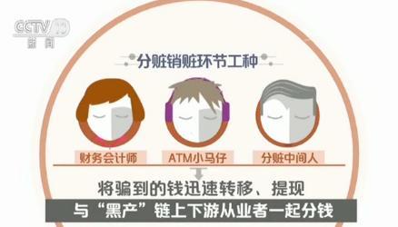 詐騙一旦實(shí)施成功,就進(jìn)入了分贓銷贓的環(huán)節(jié),財(cái)務(wù)會(huì)計(jì)師、ATM小馬仔、分贓中間人會(huì)將騙到的錢(qián)迅速轉(zhuǎn)移、提現(xiàn),并與“黑”產(chǎn)鏈上下游的15個(gè)工種從業(yè)者一起分錢(qián)。