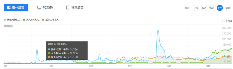 在這三家普遍3萬以上的百度指數(shù)面前,“瓜子”帶來的1000+的誤差暫且忽略不計。