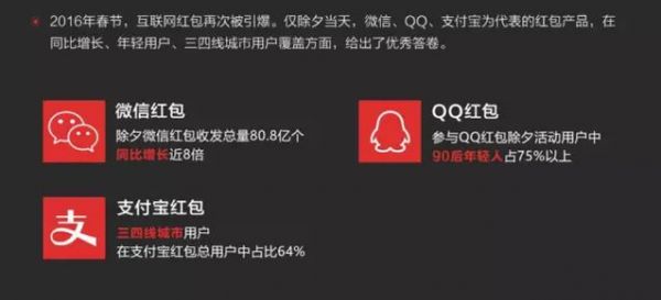據(jù)數(shù)據(jù)顯示,除夕當天共有2900萬張紅包照片發(fā)出,紅包照片互動總次數(shù)超過1.92億次。其中,90后是發(fā)紅包主力,共發(fā)送25.88億次。最喜歡發(fā)紅包的省份是廣東,江蘇和浙江緊隨其后,最喜歡發(fā)紅包的前三個城市是北京、深圳和廣州。