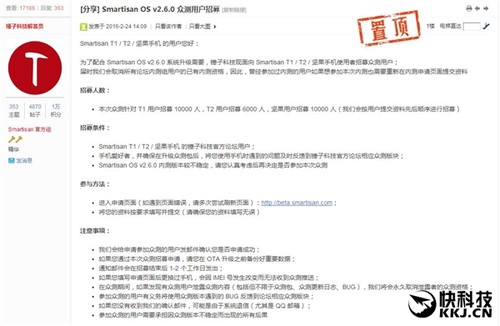 現(xiàn)在,SmartisanOSv2.6也要來了,錘子科技開始面向SmartisanT1/T2/堅果手機使用者招募眾測用戶。本次眾測針對T1用戶招募10000人,T2用戶招募6000人,堅果用戶招募10000人(按用戶提交資料先后順序)。