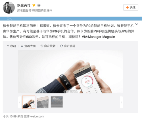 新聞通稿里沒有披露合作細節,但根據@飄在英倫(宋聚強)在微博上的爆料,徠卡可能會在華為新旗艦P9的基礎上推出一個特別版。貼有小紅點的華為手機,可能真的要來了。