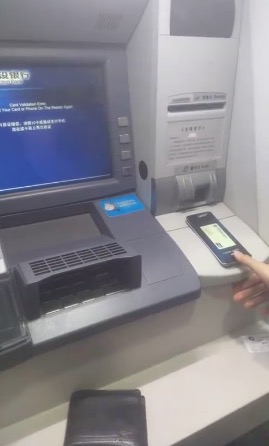 從網(wǎng)友曝光的視頻來看,與ApplePay的使用方法大同小異。該網(wǎng)友在使用手機取款的過程中,仍然需要指紋驗證。