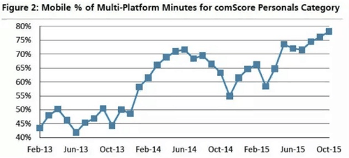 移動應用占多平臺消費互聯網產品使用時長的比例