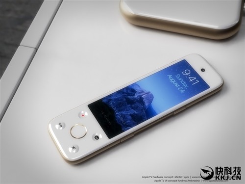 這組概念AppleTV采用了類似iPhone6s的設計元素,比如機身主體以及遙控器的邊緣過渡。機身正面是非常顯眼的蘋果Logo,左下角還采用了類似于iPhone6sTouchID的電源開關鍵