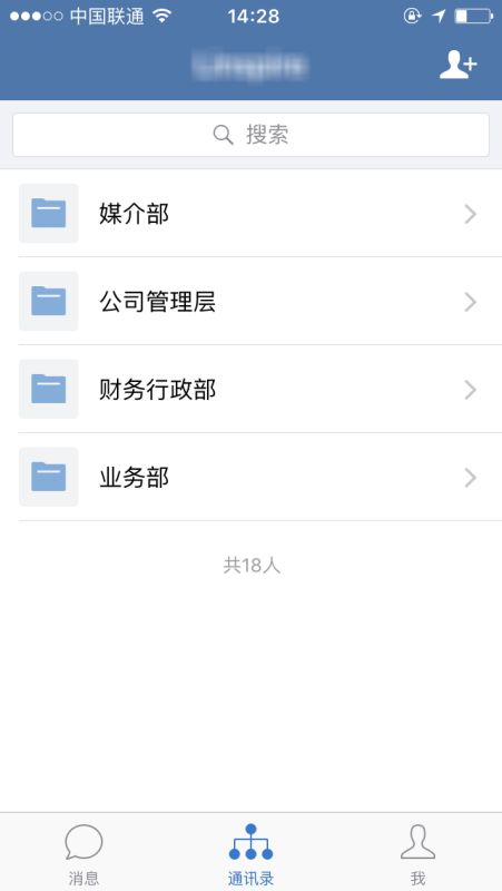 登陸成功后,可以清晰地看到公司的組織架構分類,企業通訊錄可快捷導入,統一管理,并同時完善同事的相關信息。