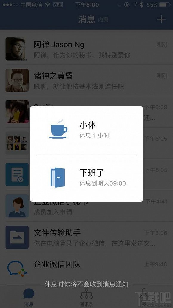 騰訊稱,“回執消息”功能既保護了消息接收者,也確保了辦公場景下重要信息的觸達;“休息一下”可以讓員工進入工作免打擾模式,在休息期間不接收工作消息,幫助員工區分工作和生活,這也是企業微信的產品理念。