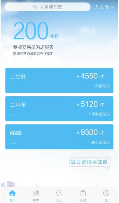 不久前,化工B2B電商化塑匯推出升級版APP“匯匯”,為行業客戶提供實時產品報價、行情走勢分析、在線自助下單、行程規劃提醒等在線交易體驗。據業內人士分析,B2B電商的品牌競爭早已進入了線上化產品技術與供應鏈服務PK的時代,誰贏得了整體競爭優勢,誰就能夠掌握了產業的話語權。