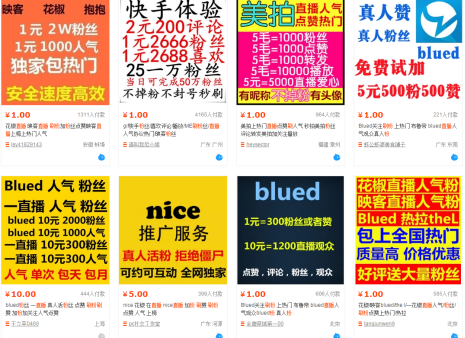 而直播刷單同樣毫不遜色,1元就能在各大直播平臺刷2W粉絲,1000人氣也僅需1元!成本的低廉,能夠迅速早就所謂的網紅。