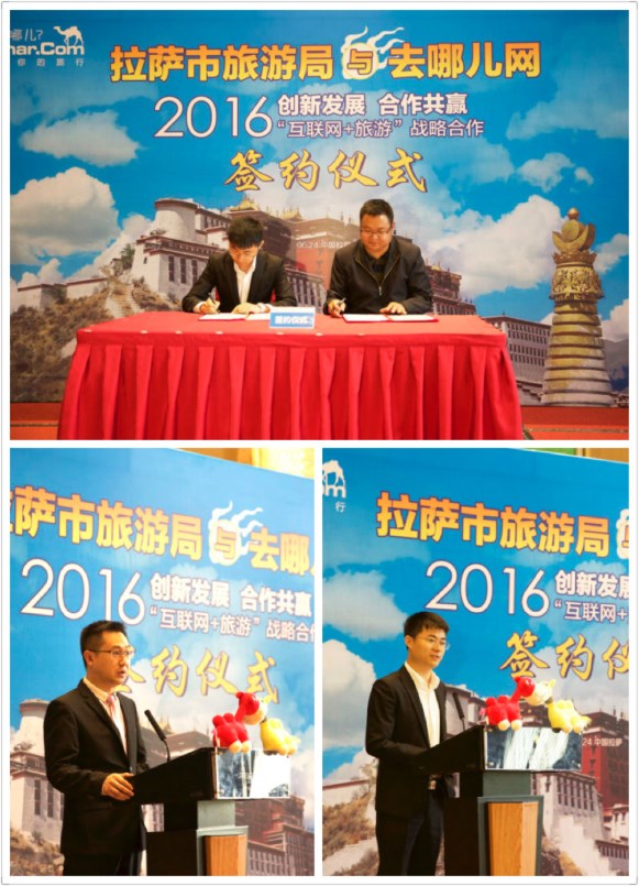 2016年6月24日上午,拉薩市旅游局與去哪兒網在拉薩圣地天堂洲際大飯店舉辦了“互聯網+旅游”示范項目戰略合作簽約儀式,并啟動去哪兒網拉薩線上旗艦店。雙方將通過本次戰略合作共同抓住“互聯網+旅游”的發展趨勢,全力探索互聯網形勢下的旅游服務新模式。