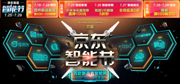 7月18-24日為活動(dòng)預(yù)熱期,7月25日京東首屆數(shù)碼智能節(jié)將正式放“價(jià)”啟動(dòng)!本次活動(dòng)涵蓋了智能家居、穿戴、智能娛樂、無人機(jī)/機(jī)器人等四大品類同時(shí)發(fā)力,并從18日開始第五代暴風(fēng)魔鏡、華為智能路由、小米手環(huán)2、及360機(jī)器人等百余款智能新品強(qiáng)勢(shì)來襲,用最尖端科技打造只屬于智能玩家的盛事狂歡。其中,京東首發(fā)的第五代暴風(fēng)魔鏡全面升級(jí)回歸,360°全景3D沉浸帶來巨幕級(jí)觀影體驗(yàn),足不出戶閱盡世界繽紛。小米手環(huán)2全新算法,讓每一步變得可見,用更多功能精彩每一天生活。