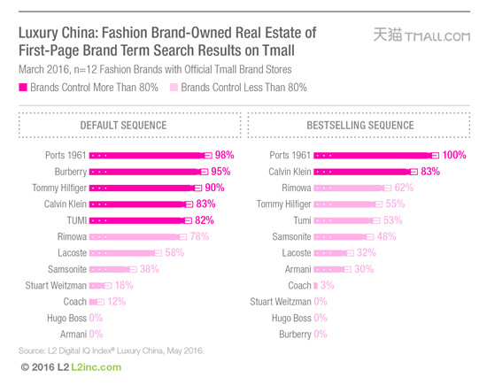 大多數奢侈品牌的搜索優先權很低(圖片來自L2公司)