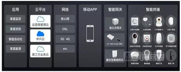 來看看中興的具體打法,據了解其智能家居整體方案架構從下到上包括了智能終端、智能網關、移動APP、網絡、云平臺和應用。中興利用通訊上的積累和優勢,打造優秀硬件產品,自己開發內容和應用,用自己的平臺自行運營,即硬件、通訊、平臺、應用的每一個環節都參與其中,打通了整個智慧家庭生態。
