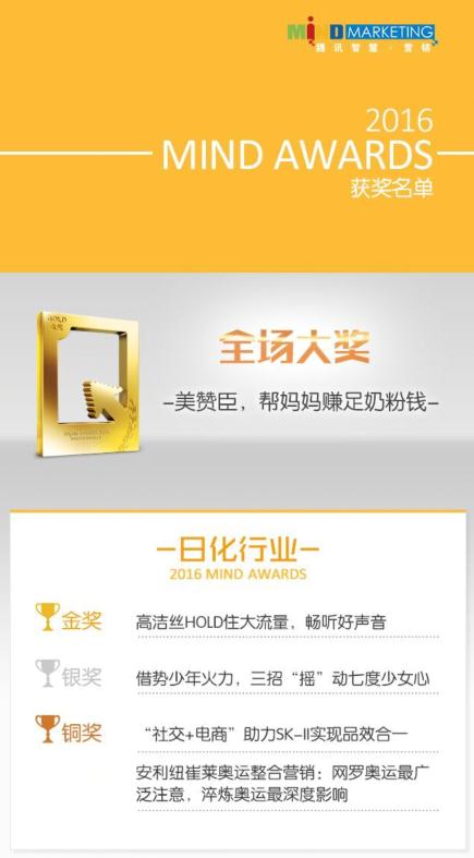 “美贊臣,幫媽媽賺足奶粉錢”獲得騰訊2016 MIND AWARDS全場大獎