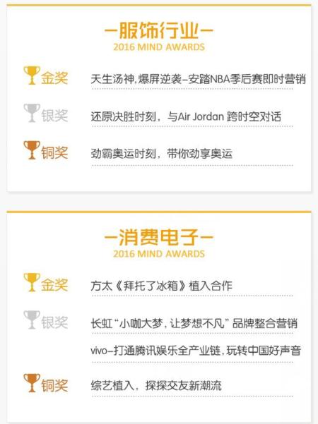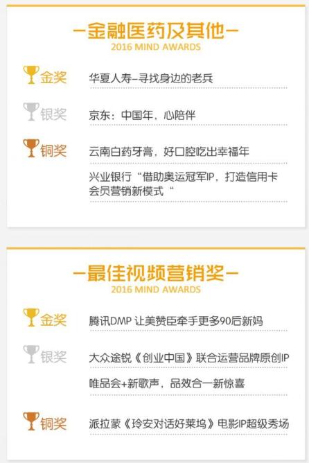 11月1日,2016騰訊MINDAWARDS揭曉了各獎項的最終歸屬。本屆MINDAWARDS從案例征集到最終評審前后歷時近3個月,22位來自跨國品牌及全...