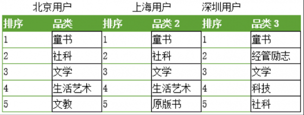 從品類看,數(shù)據(jù)結(jié)果很有意思。按金額從高至低排序,北京和上海讀者花錢最多的品類前四名一致,都是童書、社科書、文學(xué)書、生活藝術(shù)書。第五名,北京讀者購(gòu)買的是文教書,上海讀者是原版書。北京讀者購(gòu)買原版書的金額占比只有5%,而上海讀者這一比例達(dá)到9.4%。也許這能在一定程度上說明,北京讀者更注重考研、考公務(wù)員以及各種職稱考試,而上海讀者更趨國(guó)際化。值得一提的是深圳,深圳人花錢最多的前五類分別是:童書、經(jīng)管勵(lì)志書、文學(xué)書、科技書、社科書。經(jīng)管勵(lì)志書、科技書能有如此高的排名,說明深圳人的拼搏意識(shí)強(qiáng),注重在經(jīng)濟(jì)管理和科技方面的學(xué)習(xí)和積累。