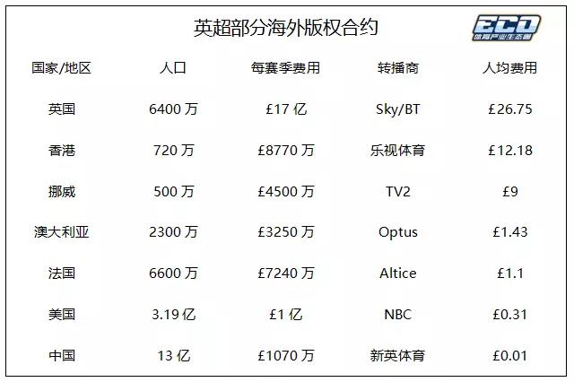 無論最終數字是多少,在80億中超之后,這份3年總價值逼近50億人民幣的合同,無疑大大震撼了整個市場,如此天價也讓中國超過美國NBC的每賽季1億英鎊,成為了目前英超在海外簽下的價格最高的轉播合約。