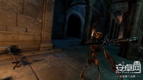 《地牢突襲者》是由英國游戲開發商Simon Barrett開發的一款專門針對虛擬現實技術設計的VR游戲。游戲中,玩家身處昏暗的中世紀石屋之中,正在與兇猛的骷髏戰士進行酣戰。不同于以往的游戲,VR視角下的玩家需要舞利刃與敵人進行肉搏,而骷髏等怪物不再是智商低下的AI,他可以用盾牌抵擋玩家的攻擊并進行反擊。戰斗中的每次兵器碰撞都會迸發出美妙的火花。
