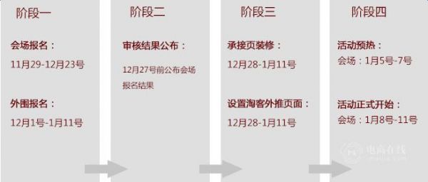 作為2017年的開年首場重要大促,2017年貨節(jié)將開啟淘寶新一年的狂歡盛宴。活動正式開始時(shí)間為2017年1月8日至11日,會場預(yù)熱時(shí)間為2017年1月5日至7日。目前,會場和外圍活動報(bào)名都已經(jīng)開始,12月27日將公布會場報(bào)名的審核結(jié)果。具體的時(shí)間節(jié)奏如下圖: