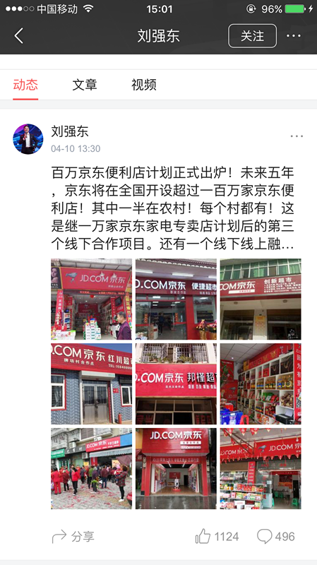 劉強東稱,這一百萬家便利店當中將有一半在農村,要做到每個村都有。該計劃也是京東一萬家家電專賣店計劃后的第三個線下合作項目。