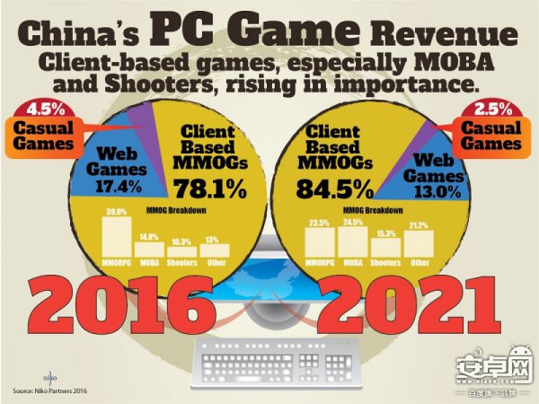 Niko表示,電子競技是PC網游和手游需求的一個推動力,也促使越來越多的中國玩家到網吧玩PC網游。“憑借著今年260億美元的國內數字游戲收入,中國游戲市場是全球最重要的單一PC網游和手游市場,”漢森在一份聲明中稱,“中國有接近6億玩家,幾乎是美國人口總量的兩倍。對于全球游戲開發商和發行商來說,這一用戶基礎是一個巨大機遇。”
