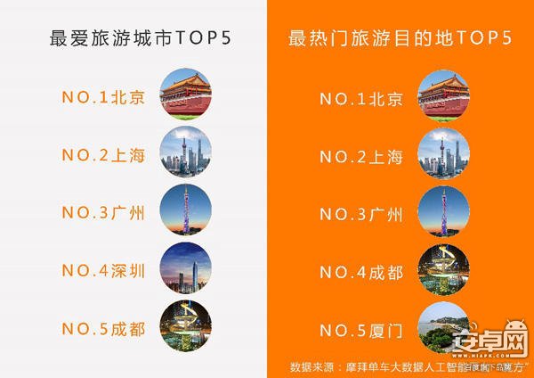 “五一”期間,許多人趁著難得的假期出門旅游,已在全國(guó)50多個(gè)城市提供服務(wù)的摩拜單車,則成為游客們?cè)诋惖赜斡[城市風(fēng)景常用的代步工具。根據(jù)摩拜大數(shù)據(jù)平臺(tái)“魔方”統(tǒng)計(jì)的用戶異地騎行數(shù)據(jù)顯示:最熱愛(ài)旅游的城市TOP5分別是北京、上海、廣州、深圳和成都;最吸引游客的城市TOP5則分別是北京、上海、廣州、成都和廈門。