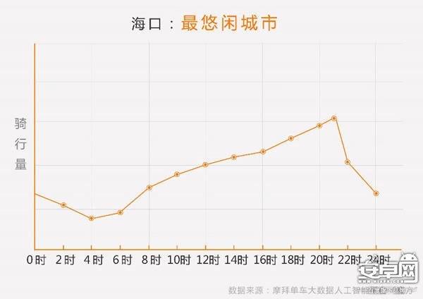 相比之下,作為騎行“最悠閑”的城市,海口的騎行高峰從傍晚18時(shí)開(kāi)啟,一直持續(xù)到21時(shí)達(dá)到峰值。萬(wàn)綠園、人民公園、假日海灘等景點(diǎn)等備受外地游客喜愛(ài)。這可能是受到游客占比較高、出行時(shí)間分散的影響,且海口天氣較為炎熱,適合傍晚以后再出門。
