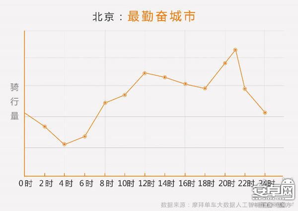 在“五一”期間,共享單車承擔(dān)更多的是游玩和聚會(huì)的出行工具,各地的騎行高峰較平日都有所延后。其中,北京依舊是“最勤奮”城市,第一個(gè)騎行高峰從平時(shí)8時(shí)左右延后到10時(shí);而海口則“最悠閑”的城市,騎行高峰出現(xiàn)在晚上18時(shí)到21時(shí)。上海的市民則更偏愛(ài)在下午出游,騎行的高峰時(shí)間出現(xiàn)在14時(shí)到17時(shí),更在17時(shí)到達(dá)騎行量高峰值。