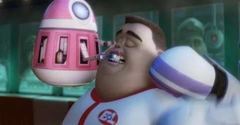 科幻動畫電影《機器人總動員》中,所有的人類都墮落成完全依靠電腦的幫助才能吃喝拉撒的胖子們,不會自己走路,都有機器人伺候。雖然因為地方小大家離的都很近,但是人們每天的生活主要是坐著看電視購物頻道,以及打電話。互相之間也沒有什么感情交流。所有人都是經濟學家設定的理性人,從小接受的電腦教育就是要消費消費再快點消費。