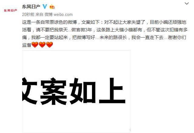 不少網友看后紛紛留言,并調侃稱不知道這個小編是不是被祭天了,想知道他還活著嗎?隨后,東風日產官微發文承認錯誤,并自嘲稱小編還頑強的活著。人生在世,犯錯在所難免,希望這個小編以后能長點心~