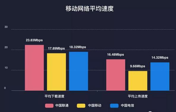 不過盡管中國移動4G用戶總數第一,但中國移動的無線上網速度最慢。據測速機構Speedtest公布的數據顯示,中國聯通、中國電信、中國移動的無線上網下行速率分別為23.83Mbps、18.32Mbps、17.89Mbps,上傳速度分別為16.48Mbps、14.32Mbps、9.66Mbps,可見無論是下載還是上傳,中國移動在三大運營商中均墊底。