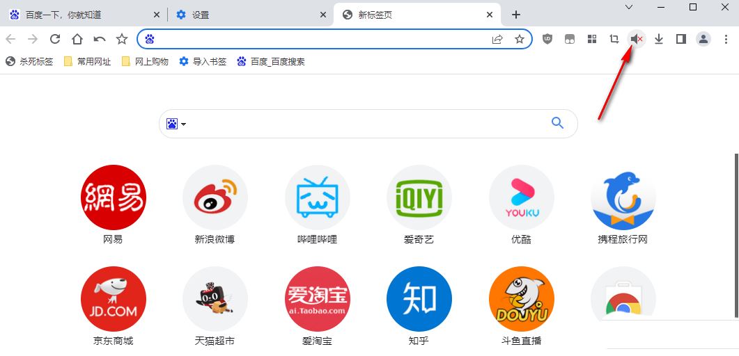 5、打開“顯示瀏覽器靜音按鈕”選項的開關按鈕之后,我們在打開有聲音的網頁或是標簽頁之前在工具欄中點擊喇叭圖標,將其切換為靜音狀態(tài)即可,我們也可以使用快捷鍵“Alt+shift+M”鍵進行靜音和接觸靜音兩種狀態(tài)的切換