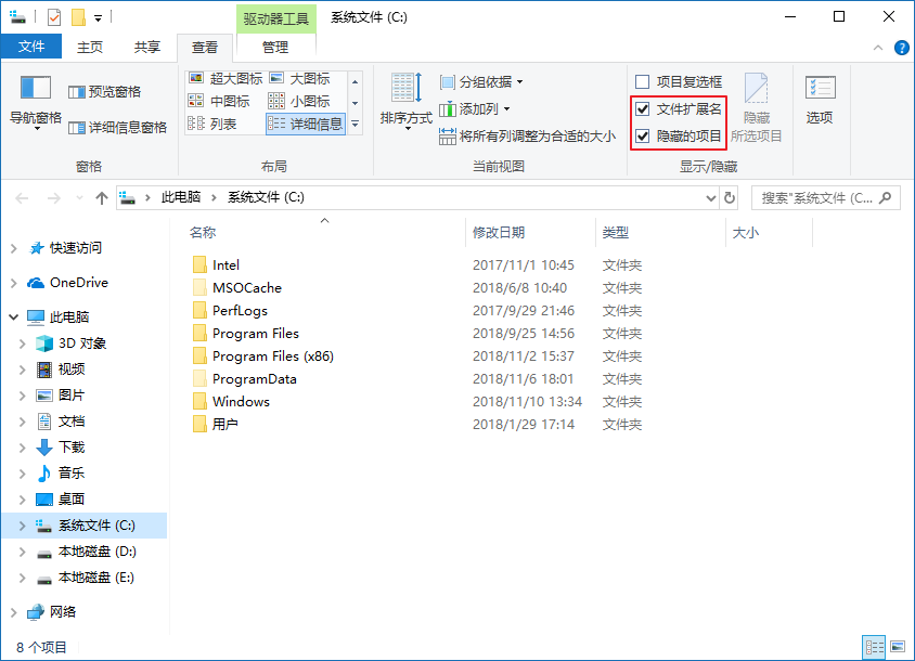 4、找到目錄C:\ProgramData\Oracle\Java\javapath (注意:是隱藏的目錄,需要打開文件擴展名和隱藏的項目,如下圖所示),將目錄中java.exe、javaw.exe、javaws.exe刪除掉。