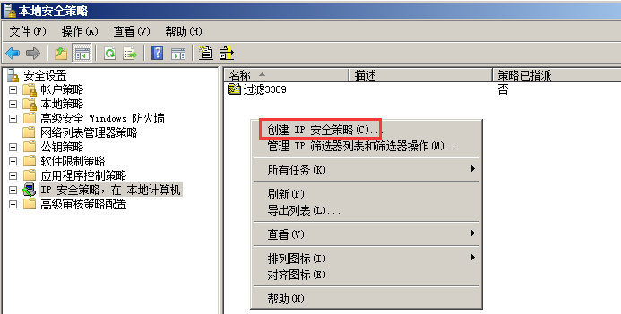 1、首先打開ip安全策略:控制面板–管理工具–本地安全策略–IP安全策略,在本地計算機上。在右側(cè)空白處右擊,選擇創(chuàng)建IP安全策略